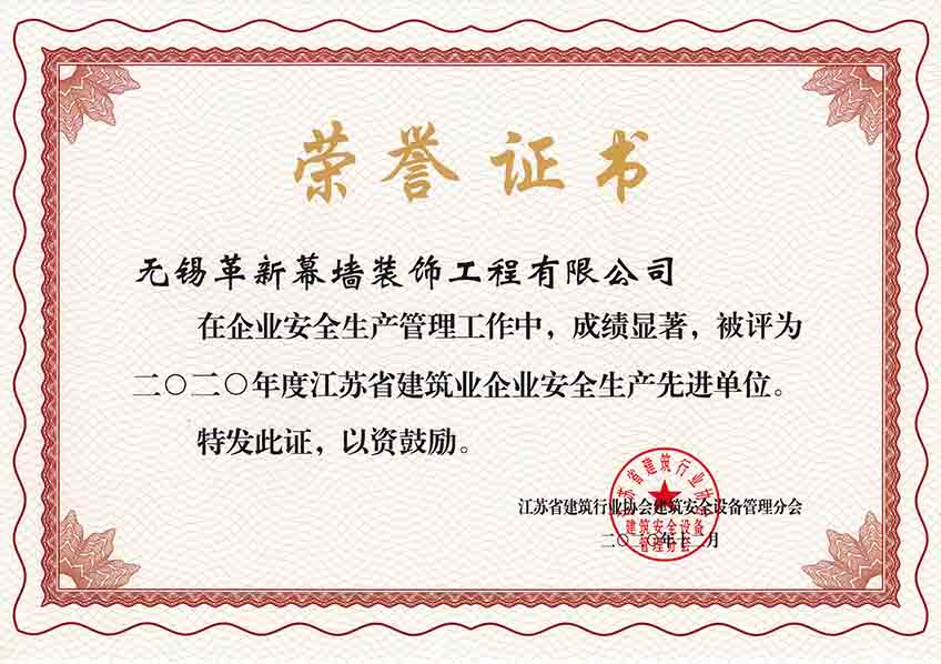 喜訊:熱烈祝賀我公司榮獲2020年度江蘇省“安全生產(chǎn)先進(jìn)單位”